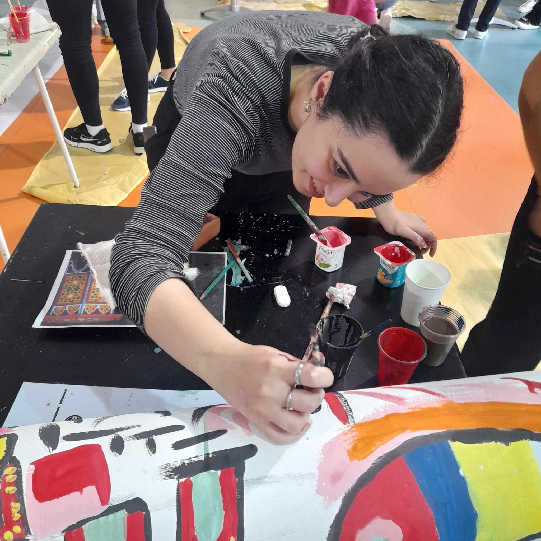 La matinée s’est poursuivie avec un atelier de peinture collectif dirigé de main de maître par Mohsen Khalaf. Les élèves ont été divisés en plusieurs groupes, favorisant un travail collaboratif intense et productif.